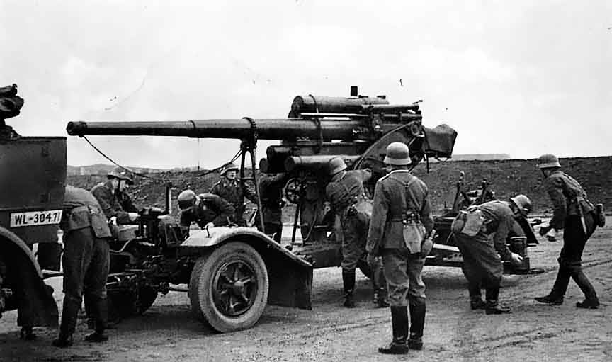 Полуавтоматические зенитные орудия крупного калибра (75-105 мм) были разработаны в Германии еще в годы Первой мировой войны. Но положения Версальского договора запретили немцам обладать зенитной артиллерией, и все орудия рейхсвера были уничтожены. Вновь их разработкой немцы занялись тайно уже во второй половине 1920-х годов, работы велись немецкими конструкторами как в самой Германии, так и в Швеции, Голландии и других государствах. При этом все новые зенитные пушки и полевые орудия, которые в те годы проектировались в Германии, получали в обозначении число 18 (то есть образца 1918 года). В случае запросов правительств Франции или Великобритании немцы могли всегда ответить, что это не новые орудия, а старые разработки, которые были созданы еще во время войны. Также в целях конспирации вплоть до 1935 года зенитные части именовались «подвижными батальонами» (Fahrabteilung).