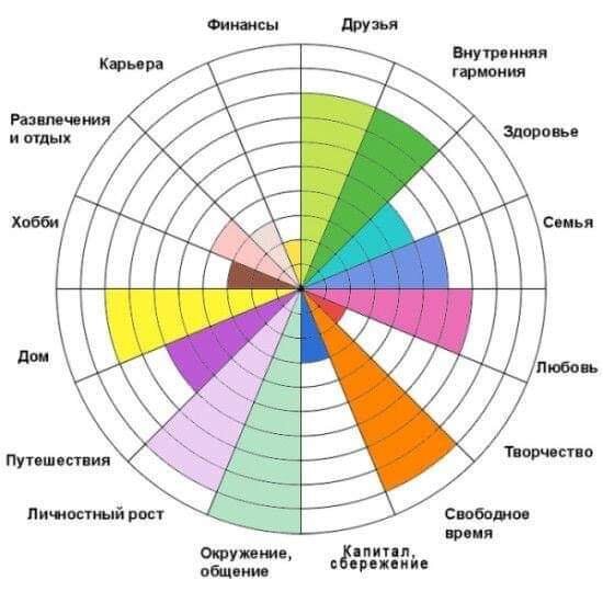 Р. Чалдини в своей книге "Психология согласия" рассуждает о методах пре-убеждения, когда мы внутренне соглашаемся еще не узнав о чем нас собираются попросить. Чалдини описывает множество методик манипулирования фокусом нашего внимания, чтобы актуализировать желания, потребности или болезненные ощущения. Особенно хорошо работают тесты, наводящие вопросы, и геометрические иллюзии, которые делают проблему "видимой". Про иллюзию простоты и логичности которую создают слова вписанные в пирамиду или в треугольник я уже писал не один раз. Давайте присмотримся к круговым диаграммам. Или по красоте к колесу баланса. Справка: Колесо жизненного баланса «Колесо жизни» (сегодня чаще его называют "Колесом жизненного баланса") изобрел Пол Дж. Майер, инструмент используют на массе тренингов в разных интерпретациях На самом деле колесо баланса это обычная круговая диаграмма (удобная форма представления данных), но за счет психологического эффекта самозаполнения она создает ощущения визуализации