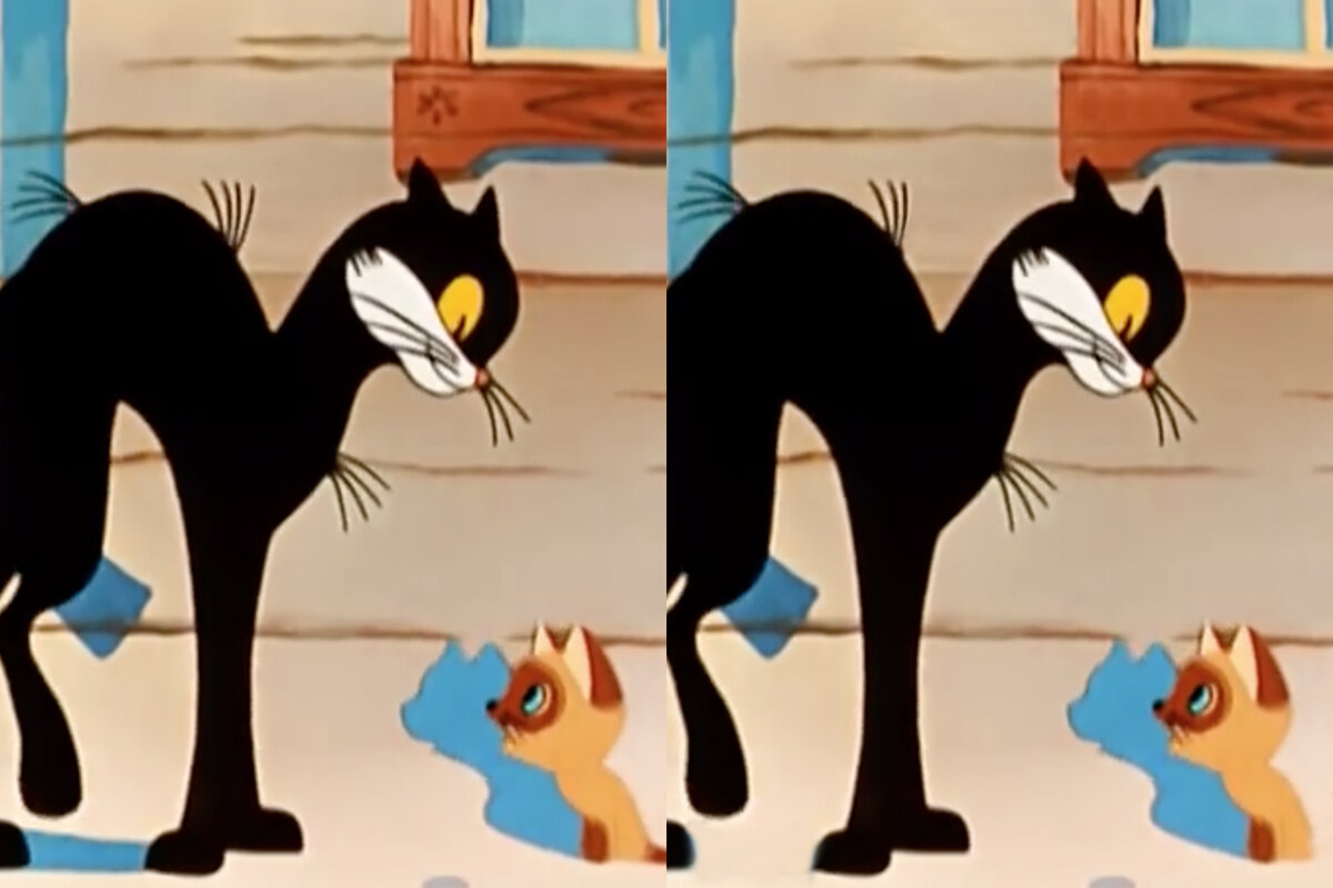Сможете найти 5 отличий на этих кадрах из мультфильма "Котенок по имени Гав"?