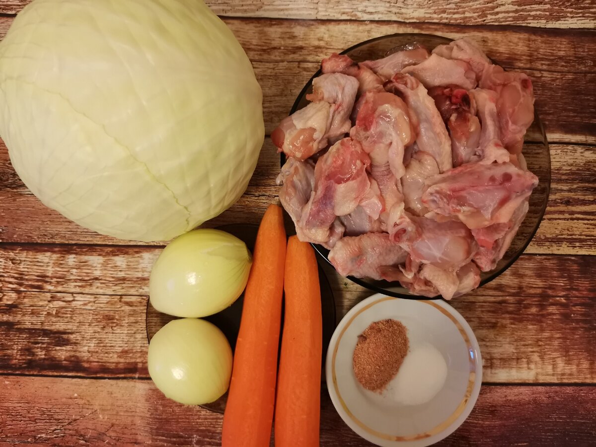 Решили с мужем, что мы давно не ели тушеную капусту. Но просто её потушить было не очень интересно. Было принято решение, попробовать сделать её в духовке с мясом. Получился вкусный и лёгкий ужин для всей семьи. По времени приготовления вышло быстро, плюс время духовки.