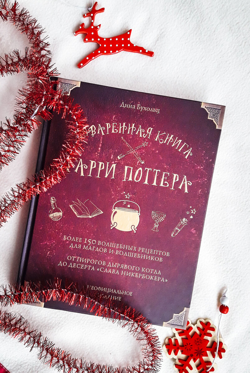 Мои дети поклонники Поттерианы, а сыну еще и нравится (иногда) готовить что-то вкусненькое, особенно по своим собственным рецептам. Поэтому, когда в поисках подарков на Новый год я наткнулась в Лабиринте на издание "Поваренная книга Гарри Поттера", то посчитала, что это прям послание от Деда Мороза и заказала без раздумий. И, спасибо Деду, не пожалела ни разу)) Начну по порядку, с автора. Dinah Bucholz (Дина Бухольц), как написано в самой книге, живет в Филадельфии, любит готовить и записывать рецепты. Никакой дополнительной информации об авторе в Интернет я, к сожалению, не обнаружила, так же как и других ее книг. Но не будем считать это недостатком: первый блин не всегда комом) Книга выпущена в 2019г в издательстве "Эксмо". Оформление издания выше всяких похвал. Книга очень добротная, размерами 25х19, т.е. больше обычного книжного формата. Обложка твердая, приятная на ощупь, с золотым тиснением. Страницы выполнены из качественной бумаги, по виду и на ощупь имитирующей старинную.