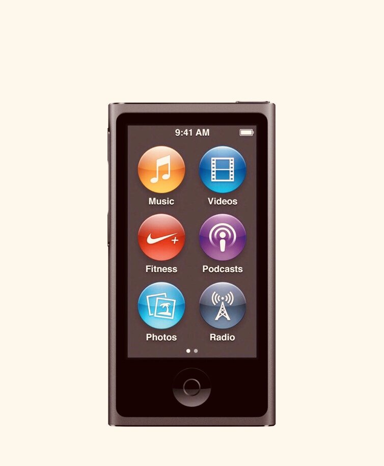 С самого начала линейка Nano была не очень популярна среди покупателей, так как если человек хотел полноценный плеер с большим объемом памяти, то он покупал серию Classic или Mini(в меньшей степени), для спортсменов была линейка Shuffle, а те, которым нужен был более продвинутый вариант плеера с поддержкой Wi-Fi, брали Touch. Так зачем же нужна была линейка Nano? С самого ее появления было непонятно: что хочет сказать Apple этим продуктом. Наверное это самая разновидная линейка iPod, даже Shuffle так сильно не менялся с каждым поколением, как iPod'ы Nano. И вот с 6 поколением Apple на рынок выпускает это: Да, да! Это iPod, который можно превратить в часы. И он был довольно успешный, и было бы логично в 7 поколении развивать идею плеера на руке, но Apple этого не сделали. Скорее всего они не хотели создавать конкурента Apple Watch. Вот так выглядит iPod nano 7, о котором мы и поговорим: Плюсы | + По сути то плюс только один. Это самый обычный iPod с самым обычным экраном. Поэтому его п