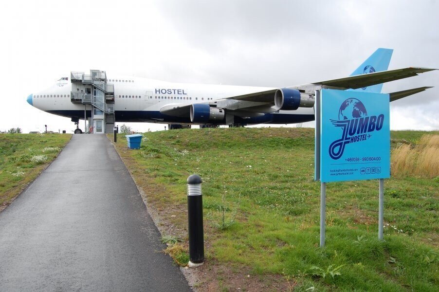 В стокгольмском аэропорту Arlanda находится необычный отель, устроенный на борту списанного Боинга-747. В отеле 25 номеров, самый престижный из которых находится в кабине пилотов. Создатели отеля сохранили многие детали интерьера самолета, даже кислородные маски.