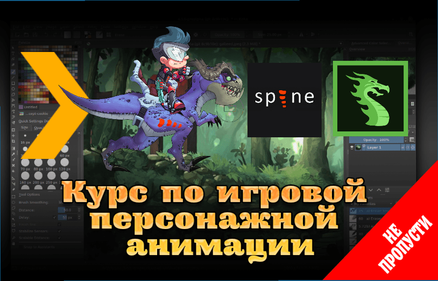 Основное направление: Анимация в играх, рекламная анимация и мультипликация. Одним пакетом 3 курса Программа состоит из трёх частей. Курс подготовки для работы в растровом редакторе KRITA и Photoshop - 20 часов 10 000р Курс по Dragon Bones - 20 часов 10 000р Курс Spine - 20 часов 10 000р Курсы по отдельности Программа состоит из трёх частей. Курс подготовки для работы в растровом редакторе KRITA и Photoshop - 20 часов 15 000р Курс по Dragon Bones - 20 часов 15 000р Курс Spine - 20 часов 15 000р Для курса требуются: Компьютер или ноутбук. Графический планшет. Установленные программы. KRITA, Dragon Bones, Spine. для общения skype И огромное желание. Более подробно о программах курса: Photoshop - думаю представления не требует, это распространенный графический пакет для обработки монтажа Растровых изображений. KRITA - это отличная программа для CG художников, с огромным количеством кистей, отличным функционалом для ретуши и монтажа растровых изображений, создания бесшовных текст