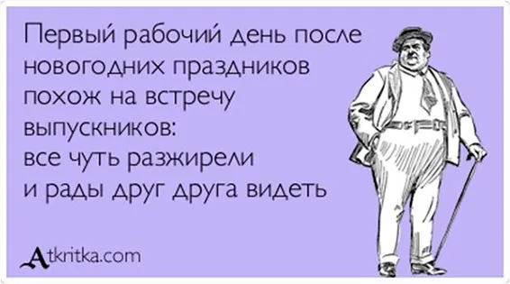Вот и закончились долгожданные новогодние праздники. И пришли к нам совсем не долгожданные апатия-депрессия-лень. И вроде бы что-то нужно делать с этим... А как? Многие уже написали огромные списки дел: Но на самом деле все эти списки только угнетают. Итак, вот основные правила, как же можно с наименьшими потерями влиться в рабочий график: 1. НЕ бросайтесь активно на все дела. Составьте себе четкий график работы и отдыха хотя бы на эти пару дней. Разрешите себе посмотреть новости, не испытывая за это чувства стыда! 2. Список дел сократите до 2х-3х самых срочных (не обязательно самых больших и важных). 3. К маленькому списку дел добавьте одно дело приятное. Что Вам нравится делать больше всего? Что доставляет Вам удовольствие? 4. ВЫСЫПАЙТЕСЬ! Скорее всего Ваш режим дня серьезно пострадал за эти дни. Но здоровый сон крайне важен для полноценной работы. 5. Вода и еда. Старайтесь есть больше фруктов и овощей (= клетчатки) и пить больше воды. Необходимо запустить эффективную работу органи