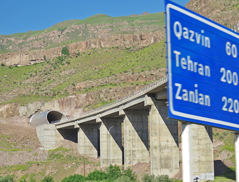 Автодорога тоже изобилует тоннелями, прошивая горы как снаряд из ролика про американский рейлган. С иранским тоннелестроением я был знаком прежде только по Таджикистану, где мрачным сырым загазованным Анзобским тоннелем таджики пугают детей, особенно по контрасту с куда более многочисленными китайскими тоннелями. Но видимо всё дело в контроле: у себя дома персы и тоннели строят безупречно - сухие, светлые и неплохо продуваемые, так что только в самых длинных приходилось закрывать окно.