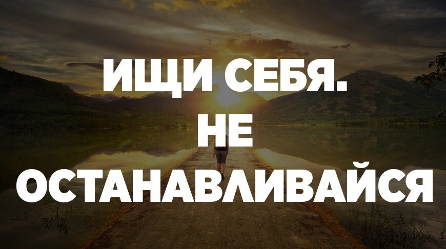 — Ищи себя. Однажды утром ты поймешь, что твой любимый цвет белый. Что зеленый чай вкуснее черного. Рассвет нравится больше, даже если ты спишь в это время. Почему эта фотография твоя любимая, а песня напоминает о друге. Эмоциональность привилегия. Даже если не умеешь танцевать, но ты хотя бы пытаешься. Окажется, что ты силен в географии, искусстве или математике. Йога увлекательное занятие, а французский стоил времени (а может это был немецкий, подумай об этом). А после, одиночество не угнетает, а помогает успокоиться. Дождь с грозой намного лучше солнышка. Слушать аудиокнигу в маршрутке приятнее чем музыку. Ты не можешь выбрать между котом и собакой, лететь или плыть на катере. Однажды поймешь, что ощущаешь больше чем окружающие, и самокопание не такое страшное дело как кажется. Без книги ты никуда не выходишь, даже если она просто лежит в рюкзаке сзади. Тебе покажется занятным, что в космосе столько неизвестного как и на дне океана впрочем. Вдруг захочется научиться писать двумя р