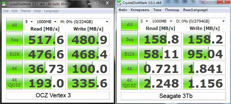 В наше время HHD уходят на задний план, поскольку появился новый вид накопителей SSD.Данный тип накопителя во много раз превышает по скорости чтения и записи.Внизу приведен пример разницы скорости чтения и записи SSD и HHD. Как можно заметить SSD во много раз превосходит HHD по скорости чтению и записи файлов. Это было небольшое вступление по поводу типу накопителей.Сейчас я расскажу как выбрать нужный вам SSD и не ошибиться.Для начало поговорим о видах чипах памяти которые присутствуют на рынке.В основном это TLC и MLC.Лучше всего брать TLC 3D NAND.Чем свежее будет год выпуска SSD, тем лучше,поскольку в более новых моделях SSD применяют более продвинутые контроллеры. 1)TLC- Довольно дешевая в производстве технология, которая позволяет при большой плотности разместить огромное количество памяти, а это сильно влияет на выносливость накопителя и позволяет производить запись/стирание ячейки около 1000 раз. 2)MLC- более надежный тип накопителя. Количество гарантированных циклов записи/чт
