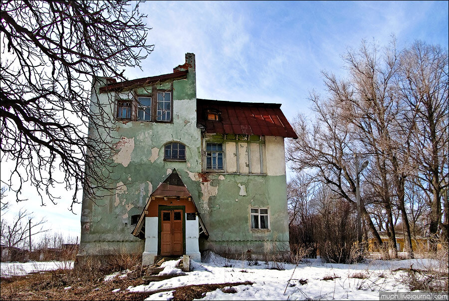 Речь идёт о заброшенном больничном городке, который изначально был богатейшей усадьбой княгини Ольги и трансформировался в центральную районную больницу только после революции. В каждом строении усадьбы разместили то или иное лечебное отделение.