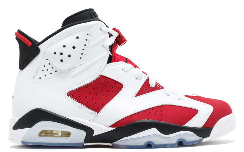 В то время как Майкл Джордан усердно готовился к новому сезону в NBA, дизайнер Тинкер Хетфилд во всю работал над созданием новых номерных кроссовок для Его Воздушества, имя которым Air Jordan 6. Впервые они поступили в продажу в феврале 1991 года с рекомендованной ценой в 125$. Конечно, за эту сумму кроссовки уже нигде не найти. В дизайне данной модели абстрактно зашифрована цифра 23 — номер, под которым выступал Эм Джей. При создании Джордан 6 дизайнер вдохновлялся автомобилем Porsсhe. Поэтому их силуэт такой гладкий, обтекаемый, словно перед нами гоночное авто. В задней части кроссовок Air Jordan 6 можно рассмотреть символичный спойлер машины у сухожилия, который на самом деле является петлей для надевания. Кстати, эту же функцию выполняет и резиновый язычок, благодаря двум крупным отверстиям. Так же в модели присутствовали и нововведения — в отверстиях для вентиляции скрывался светоотражающий материал, который давал о себе знать под вспышками фотокамер. На шнурках красуется так наз