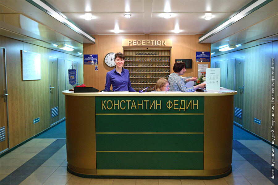 На фотографии стойка регистрации теплохода «Константин Федин» в главном пролете.