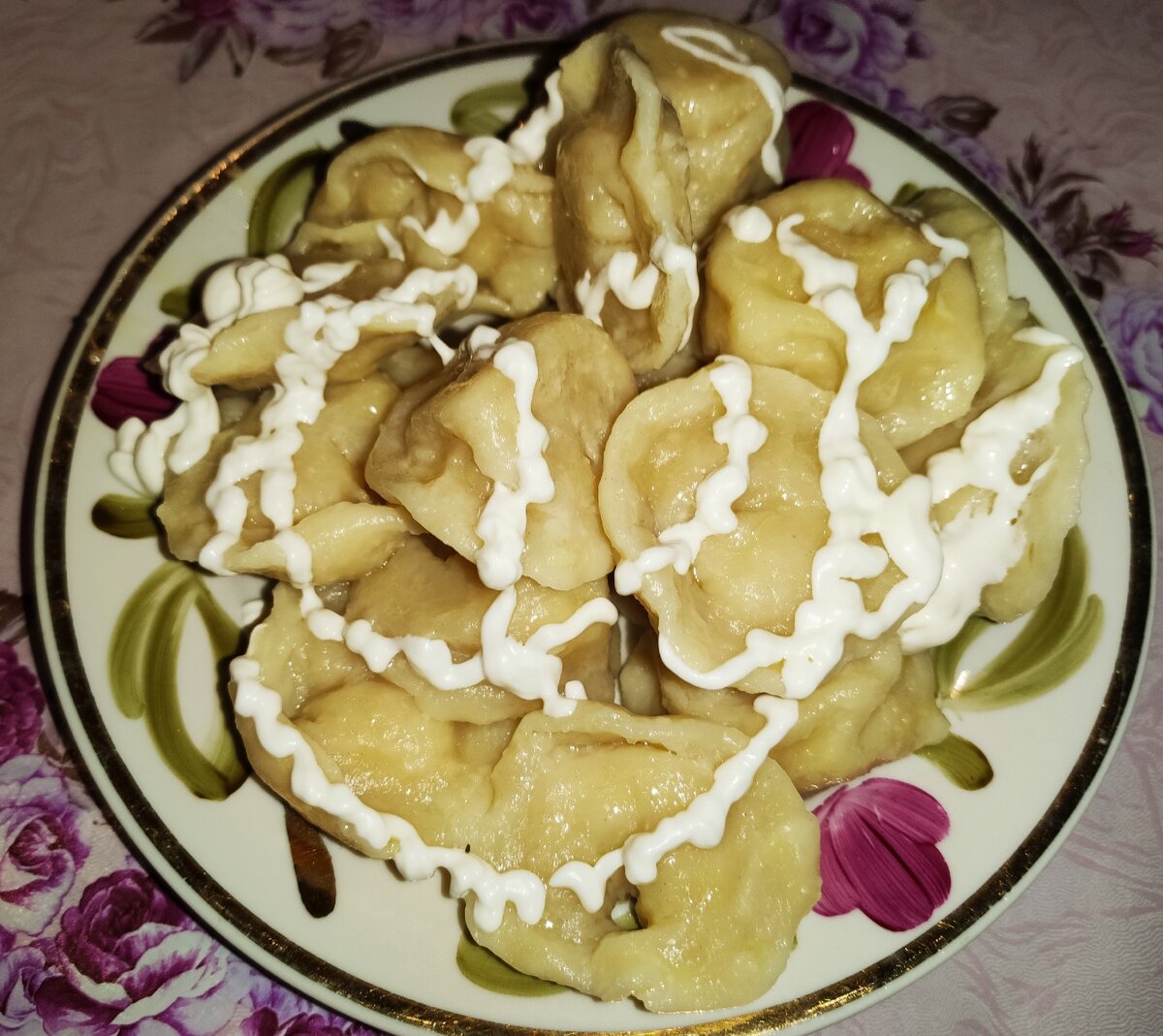 Всем привет 😊! Сегодня я расскажу Вам, рецепт очень вкусных пельменей. Тесто получается очень тонкое,не липнет к рукам при лепке, а самое главное пельмени не развалятся во время варки. Для ингредиентов нам понадобится: - мука 600-650гр. - яйца 2 шт. - 0.5 ч.л. соли. - растительное масло 60 мл. - вода 190 мл. (теплая). Для фарша: - фарш -400 гр. (любой). - лук 2 шт. (средние). - вода 50мл. - соль 1 ч.л. Приготовление теста. В глубокую миску просеиваем 500 г. муки, добавим соль, яйца. В теплую воду вливаем масло и добавляем все в миску. Замешиваем тесто сначала вилкой, затем на столе, добавляя оставшуюся муку. Берём пакетик или пищевую пленку и заворачиваем тесто, чтобы оно не сохло и положим в холодильник на 15 минут. Тем временем приготовим фарш. В блендере или через мясорубку перемолоть 2 луковицы. Фарш солим, по желанию добавляем специи, лук, воду и перемешиваем. Достали тесто с холодильника и разделим его на 3 части. Две уберем пока в пакет, а первую расскатываем в тонкий пла