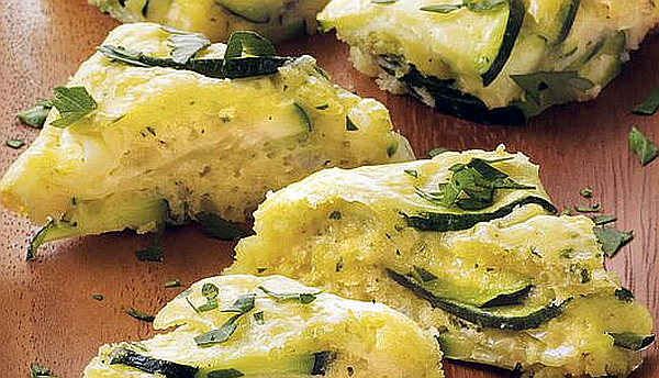 Если вы соскучились по кабачкам до их обильного урожая, то приготовьте этот легкий омлет в качестве закуски или на завтрак. На 4 порции понадобится: Как приготовить: Нарежьте кабачки сначала вдоль пополам, а затем очень тонкими ломтиками. Лук мелко порежьте. Чеснок натрите на мелкой терке. Петрушку очень мелко порубите. Натрите сыр на мелкой терке. Включите духовку и выставите температуру в 180 градусов. Слегка взбейте яйца в большой миске. Главное, чтобы белок и желток хорошо перемешались, но пена еще не образовалась. Добавьте кабачок, лук, чеснок, петрушку, соль, перец и сыр. Все хорошо перемешайте. Аккуратно выложите получившуюся массу в форму. Поставьте в разогретую до 180 градусов духовку и выпекайте около 25 минут до золотистого цвета верхней корочки. Разрежьте на порции и подайте к столу. ---------- Приятного аппетита!