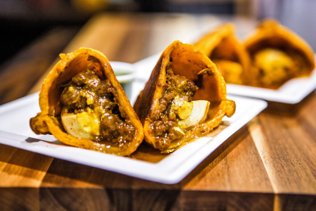 В муку добавляем паприку и сахар, закладываем жир и растираем муку между ладонями. Яйца (отделив от общего кол-ва 1 белок) смешиваем со стаканом солёной воды и вливаем в муку. Замешиваем эластичное тесто и оставляем его под плёнкой на 30 минут. Боливийцы никаких разрыхлителей и соды не используют.