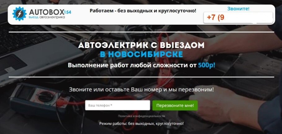 Кейс по созданию лендинга с конверсией 37% и настройки Яндекс Директ. Автоэлектрик с выездом в г. Новосибирск