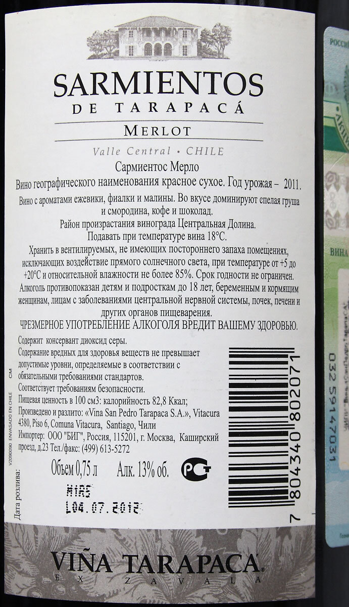 Прошедшим Новогодним праздникам посвящается. Так как выходные были долгими, то времени хватило не только на то, чтобы побаловать себя вкусным вином, но и на то, чтобы почитать что на контрэтикетках написано. И написан там, как правило, такой бред. Для примера контрэтикетка выше. Чилийское мерло - вполне достойное красное сухое вино. Ничего выдающегося, но и совсем неплохо. Вкус у него ожидаемый - вкус винограда мерло. Но нам пишут, что на самом деле вкус у него ежевики, фиалки и малины. И при этом доминируют всё в том же вкусе спелая груша, смородина, кофе и шоколад? Кто-нибудь нюхал фиалку в запахе которой доминирует запах кофе? А ел малину со вкусом смородины? И кстати спелость груши я обычно определяю по тому застревают в ней зубы или нет, а не по вкусу. Вкусов у груши, в зависимости от сорта, может быть превеликое множество. Вот для кого и для чего это пишут? Мне попадалось вино на контрэтикетке которого в описании вкуса упоминалась кирза. Для тех кто не в теме. Кирза́ (устаревш.