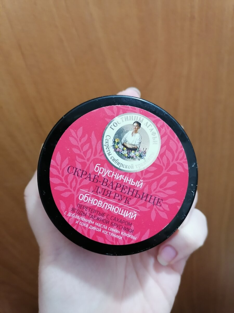 Привет! Сегодня хочу рассказать об одном из своих любимых скрабов- скрабе-вареньице для рук от моей любимой фирмы "Рецепты бабушки Агафьи". Приобрела в интернет-магазине "Беру!". До этого я использовала только скрабы для лица и для тела, скрабировать руки мне и в голову не приходило🤪 Но эффект меня просто поразил, я не думала, что кожа рук может быть такое мягкой😍 Выбрала "обновляющий" с брусникой, ещё были "омолаживающий" с морошкой и "тонизирующий" с черникой. О приобретении ни разу не пожалела. Сейчас расскажу о плюсах и минусах: ➕ Цена (85 рублей за 100гр) ➕ Состав Очень порадовали натуральные ингредиенты. Даже с моей аллергией мне подошло. ➕ На 1 применение нужно совсем не много. За месяц не использовала даже половину. Способ применения:нанести немного скраба на руки и растереть массирующими движениями. ➕ Солевые кристаллы в комплексе с фруктовым соком и сахаром отлично очищают и обновляют кожу ➕Приятная консистенция и аромат. ❎ Из минусов могу отметить только то, что