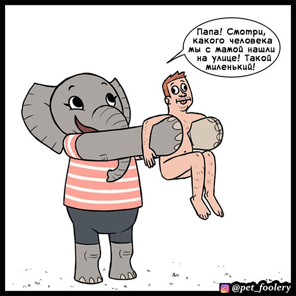 Весёлый комикс о том, что было, если бы слоны и люди поменялись местами