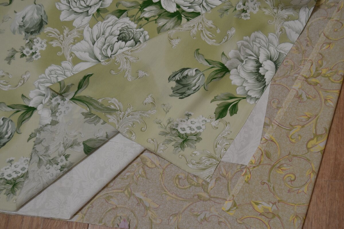 Всем привет! У меня как у плюшкина есть много отрезов ткани разной длины, качества и расцветки, но вот один кусок ткани мне не давал покоя, а именно сатин «Белый сад», который я брала на пробу в размере 1,5 м при ширине 2,2 м. Он долгое время лежал без дела, да и сложно что-либо сшить из такого маленького куска ткани, был, конечно, вариант сшить одеяло в лоскутной технике, но работать с сатином крайне сложно в мелких деталях, да и подобрать к нему компаньон я не смогла. Зато, я решила сшить из него накидку сидушку на диван. Которая сразу снимает несколько проблем; во-первых, сидеть на натуральных тканях намного приятней чем на синтетики, сатин 100% хлопок, во-вторых, стирать её можно в стиральной машинке, а не руками, как происходит с чехлом от дивана, в-третьих, диван преображается и создаётся уютная атмосфера в комнате, в-четвёртых, не требуется особых навыков в швейном мастерстве для создания такой очаровательной накидушки. Решила усложнить задачу и сделать её двусторонней, с одной