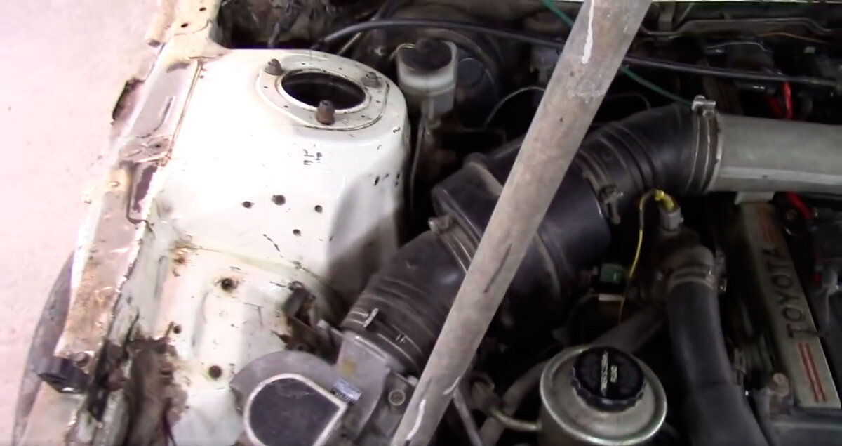 Хочу показать вам как вытянуть чашку кузова без стапеля.В ремонте на этот раз Toyota Chaser ,у которого завалена правая чашка вовнутрь на 1,5 см. Как определить что чашка ушла? Можно измерить диагональ от центров верхних болтов крепления стоек к болтам крепления кронштейнов капота к кузову или проверить расстояние между центрами болтов обеих чашек и определить расхождение. Я обратил внимание на крепления крыла,с правой стороны расточено отверстие и выгнута планка. Ранее кто-то не дотянул чашку,а натянул крыло. Сделал приспособу ,которую прикручу к чашке и буду вытягивать. Машину закрепляю за нижнюю мощную балку,цепь привязана к полу,т.к. когда буду тянуть,чтобы авто не поднималось. От балки в бок идут 2 растяжки треугольником так,чтобы не задеть тормозные трубки. Растяжкой ,прикрепленной с одной стороны к гусю,с другой к чашке,начинаю вытяжку. От чашки на другую сторону протянул рулетку.чтобы контролировать прогресс вытяжки.Делаю несколько оборотов и проверяю на сколько чашка сместила