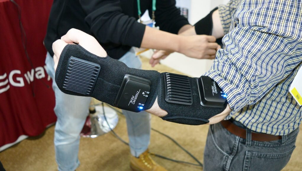 Корейская компания TEGway , разработчик тактильного аксессуара, который генерирует высокую и низкую температуры с впечатляюще низкой задержкой, планирует выпустить носимый термальный тактильный комплект разработчика VR в марте. Последний прототип представлен на этой неделе на выставке CES 2020. На CES 2020 на этой неделе Tegway продемонстрировал свои новейшие технологии, на этот раз прототип будущего комплекта для разработки, ориентированного на виртуальную реальность. Прототип состоит из пяти частей: двух «перчаток», двух «рукавов» и устройства, установленного на лбу на vr-гарнитуре, которое вызывает колебания температуры на вашем лице. В отличие от более раннего прототипа, который был подключен с помощью больших кабелей, все эти устройства работали от маленьких встроенных батарей. Компания показала элементарную, но функциональную демонстрацию виртуальной реальности, используя комплект разработчика ThermoReal с HTC Vive. В демоверсии персонаж бросает в вас огненные шары или снежки;