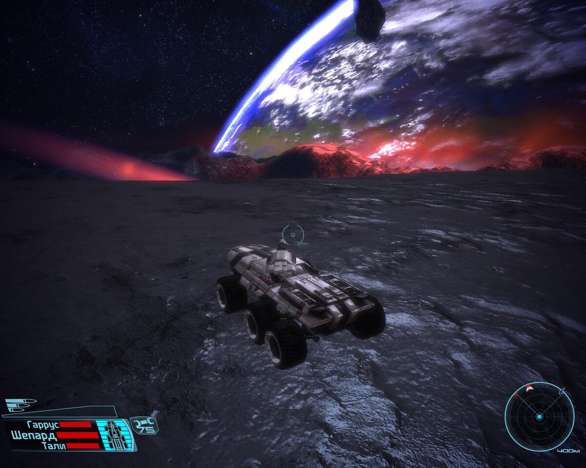 Вид со спины, все по-космически строго и сдержано и довольно красиво. В ME «за красиво» отвечает не графика и не дизайн - за красивости отвечает камера.