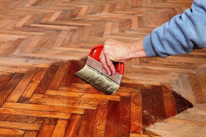 Натуральная древесина боится прямого воздействия солнечных лучей и влаги, она требовательна в уходе и нуждается в защите от неблагоприятных внешних условий. Широкая палитра специальных лаков позволяет подчеркнуть фактуру пола, увеличить его эксплуатационный ресурс и облегчить уборку. Факторы, определяющие характер покрытия Главным критерием выбора считается уровень нагрузки на обрабатываемую зону: степень стойкости отделки должна соответствовать проходимости в комнате. Лак для кухни, гостиной и коридора не будет идентичен покрытию для детской и спальни. Также нужно принимать во внимание следующие условия: Важно! Существуют нейтральные лаки, не влияющие на естественную палитру дерева после высыхания. Другая категория смесей «поджигает» исходный цвет, преобразуя его в более насыщенную тональность и акцентируя характерную структуру материала. На что влияет степень блеска? После высыхания лак может обрести полуматовый, матовый, нежно-матовый облик – здесь выбор зависит только от личных