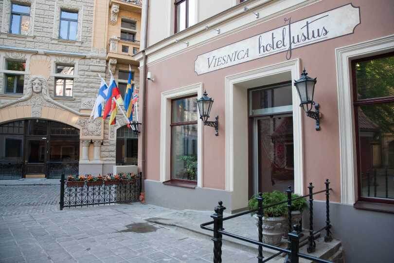 Среди исторических зданий в самом центре Риги на улице Jauniela можно найти небольшой, но достойный внимания отель «Hotel Justus». Его окружают мощеные улочки и дома, находящиеся под охраной ЮНЕСКО. Архитектура середины XVIII века создает невероятную атмосферу. Элегантный кремовый фасад гостиницы не менялся с 1874 года. Конечно, его реставрировали, но внешний вид удалось сохранить. Внутри здания 45 номеров нескольких категорий. Они оформлены в духе эпохи XVIII века. Обнажена историческая кирпичная кладка. Она сочетается с белой штукатуркой, частично покрывающей стены. Почти все кровати имеют железный каркас, а мебель в основном сделана из массивного красного дерева. Наверх гостей ведет старинная винтовая лестница из состаренных досок. Автором интерьера является Сергей Саркисов, больше известный среди предпринимателей. В качестве декора были использованы как антикварные предметы, так и произведения современного искусства. Среди сундуков, крупных металлических багетов для зеркал и картин