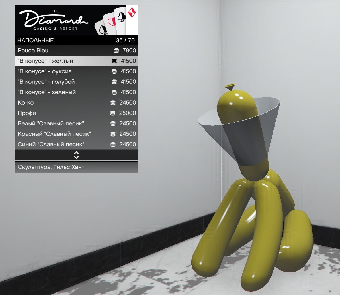 Вчера инсайдером был найдет весьма необычный способ получить новые футболки 1.Требуется купить вот эту скульптуру в магазине казино 2.Данная скульптура должна быть расположена в пентхаусе казино 3.Вот и всё.Теперь направляемся в ближайший магазин одежды и во вкладке "ФУТБОЛКИ" будут две новых футболки