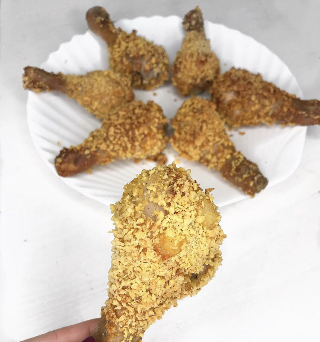 ⠀⠀ Готовится на раз-два! Раньше делала много подобных вариантов, но они были без хруста. А эти идеально хрустят) ⠀⠀ Для приготовления нам понадобятся: ▪️Куриные голени 7 шт.; ▪️1 яйцо; ▪️молоко ~ 100 мл; ▪️кукурузные хлопья без сахара ~ 150 грамм. ⠀⠀ Приготовление: Куриные голени маринуем в соли/специях по вкусу ( я брала приправу «для курицы»). Яйцо смешиваем с молоком, добавляем соль и специи( красный сладкий перец). Кукурузные хлопья перекручиваем в мелкую крошку. Окунаем голень в яичную смесь, затем обвливаем в кукурузных хлопьях. Делаем тоже самое с остальными. Выкладываем голени на противень и выпекаем в духовке , примерно 40-50 минут при 200 градусах. ⠀⠀ К готовым голеням можно сделать вкусный соус: сметана+ зелень+ соль+ чеснок. Приятного вам аппетита. Подписывайтесь на мой канал здесь, и не забываем про лайки. Вам не сложно , а мне очень приятно.