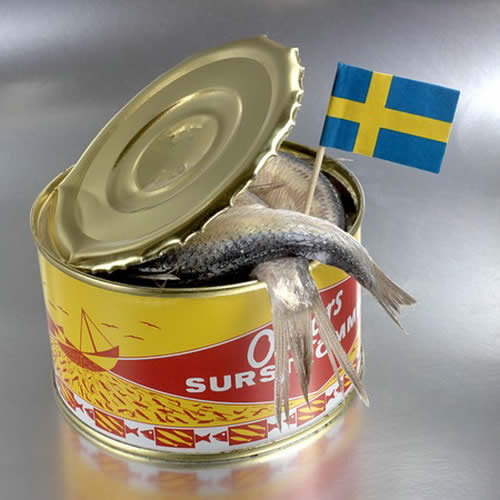 1. Сюрстрёмминг Это шведское блюдо, состоящая из протухшей балтийской салаки (или селедке) в банке. Имеет очень резкий запах и специфический вкус.