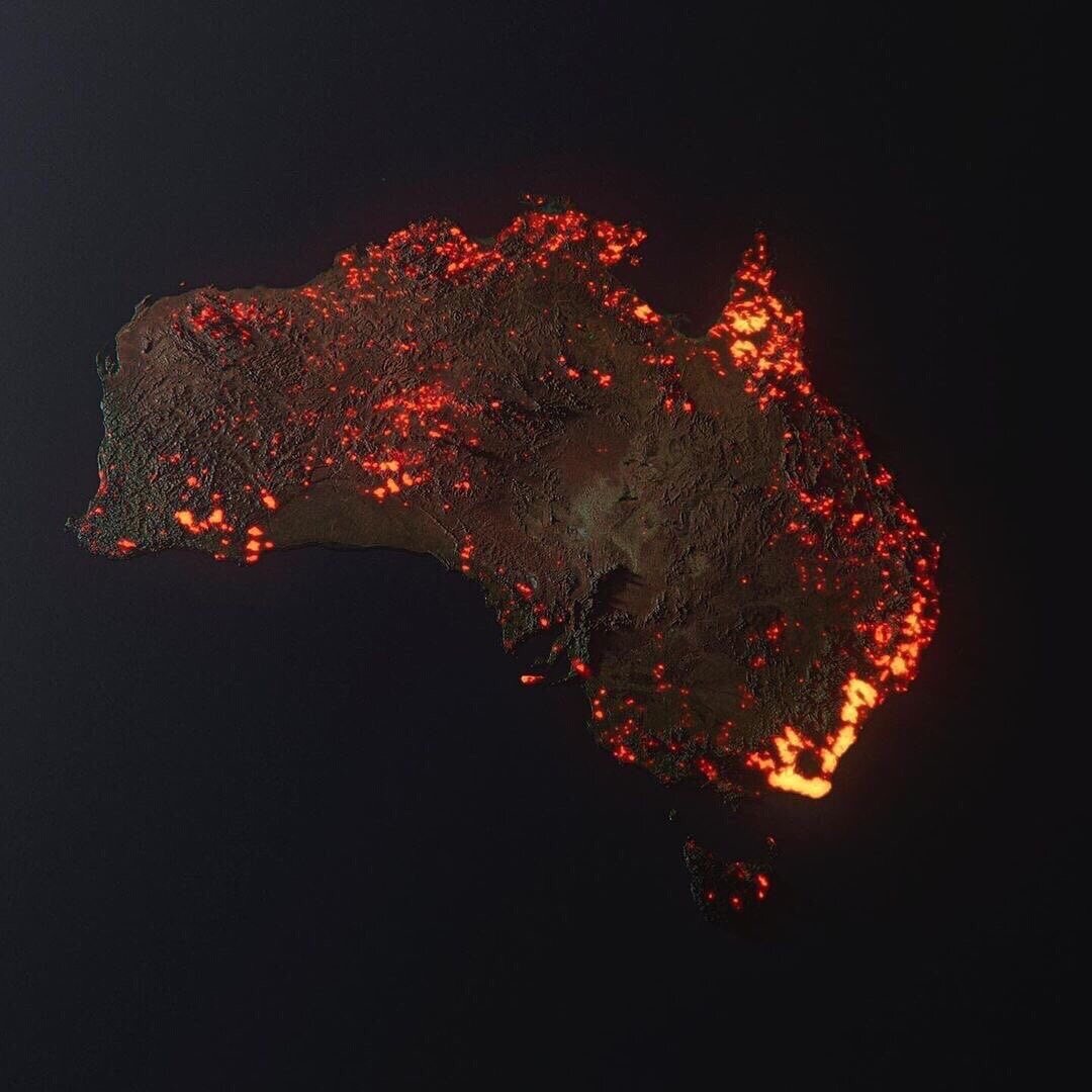 По всей Австралии сгорело множество домов. Уцелели только металлические листы крыш и корпуса автомобилей. Цвета и пейзажи напоминают какой-нибудь фильм про постапокалипсис. В общем-то, это он и есть, только в локальном масштабе.