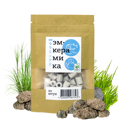 ЭМ-керамика – это керамические цилиндрики, полученные путем обжига глины, обогащенной эффективными микроорганизмами. Применение 1. В быту. - ЭМ-керамика структурирует воду, делая водные кластеры более мелкими, а воду менее жесткой, нейтрализуя в воде запахи и вредные для здоровья вещества. Расход: 1 цилиндр на 1 л в кувшин с водой (или фильтр) или в электрический чайник. - при приготовлении пищи при обжаривании или во фритюре, кляре, темпуре (фритюрница, сковорода, мультиварка, рисоварка). ЭМ-керамике не вредит высокая температура, она предотвращает процессы оксидации и образования свободных радикалов в растительном масле. Масло не окисляется при использовании и хранении, тем самым предотвращается появление прогорклости. Способ применения: В растительное масло поместить 3-5 цилиндров на 1 л масла в процессе приготовления пищи. - для устранения запаха в холодильнике и повышения срока хранения продуктов необходимо разместить 1 пакет ЭМ-керамики (20 шт.) в каждом отделе холодильник