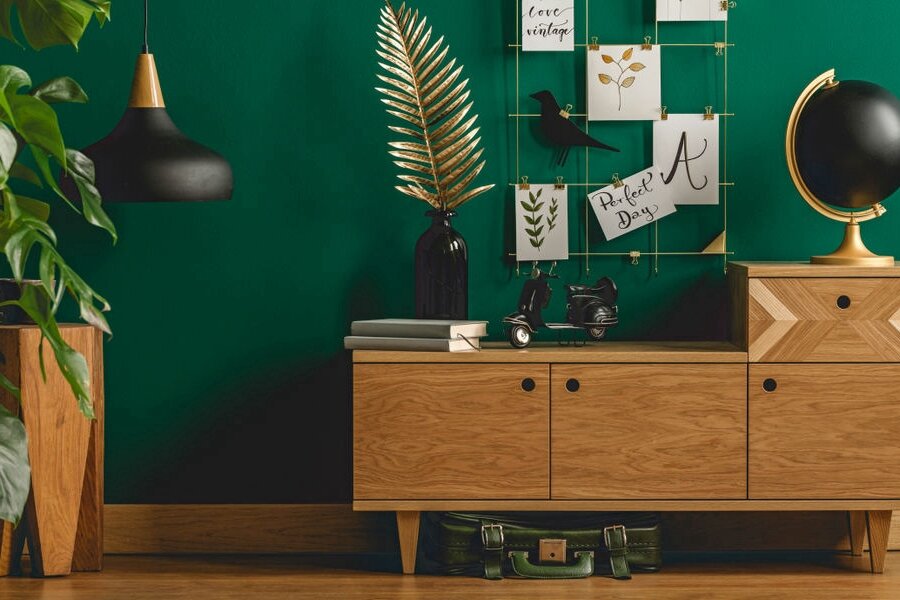 Темно-зеленый. Бутылочный зеленый выглядит броско и изысканно. Им расставляют акценты — оформляют стену, покупают диван или кухонный гарнитур в таком цвете. Он добавляет комнатам роскоши.
