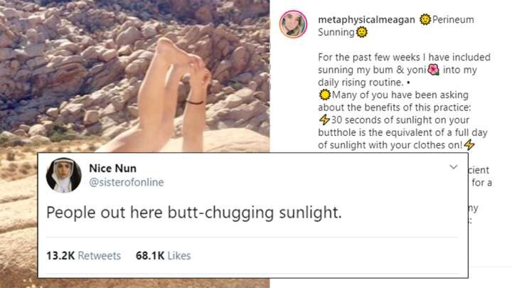 По роду службы приходится интересоваться последними веяниями Инстаграма, а тут фитоняшки как взбеленились, начали рассказывать о тайной практике потребления энергии солнца зоной между анусом и членом/вагиной (нужно