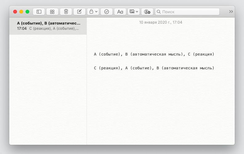 Люди по-разному реагируем на одинаковые события. И от этой реакции во многом зависит качество нашей жизни. АВС-дневник помогает программировать нужную реакцию на определенное событие. Например, вас раздражает, когда кто-то не берет трубку. Дневник поможет относиться к этой ситуации спокойно. Методика основана на том, что каждое событие запускает внутреннюю установку, которая вызывает вашу реакцию. Например, вы звоните → трубку никто не берет → вы думаете, что вас игнорируют → вы злитесь. АВС-дневник поможет научиться распознавать связи между событиями, мыслями и чувствами. Вас сложно будет вывести из себя, к любой ситуации вы будете относиться позитивно. Вы научитесь управлять своими эмоциями и мышлением. Пошаговый алгоритм Возьмите блокнот или откройте электронный файл. Определите, что вы хотите проработать. Это должен быть эпизод, который заставил вас почувствовать негативные эмоции или сделать ненужные действия. Мы разберем этот эпизод по частям: определим свои эмоции, что к ним