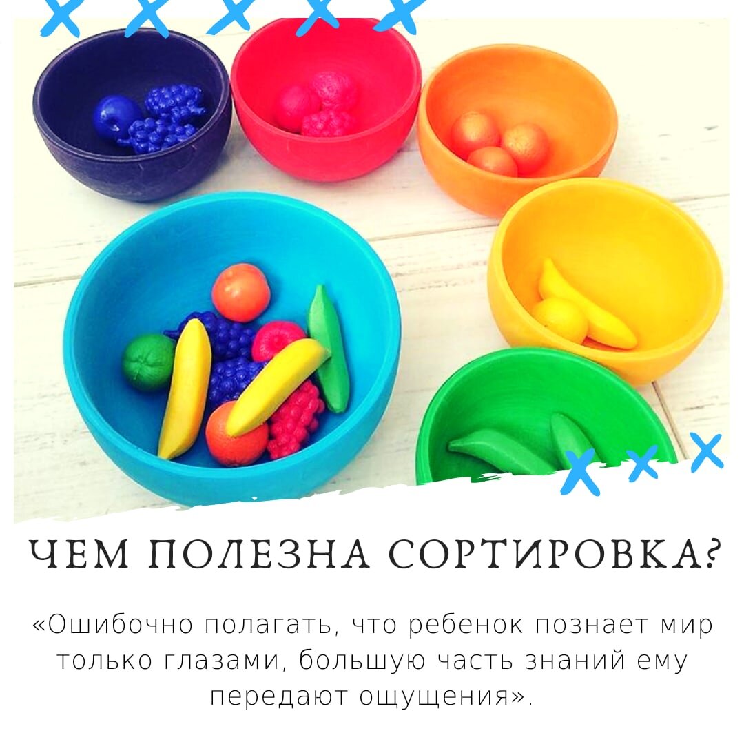- период сенсорного развития (при помощи сортировок ребёнок учится выделять признаки предметов и развивает органы чувств.