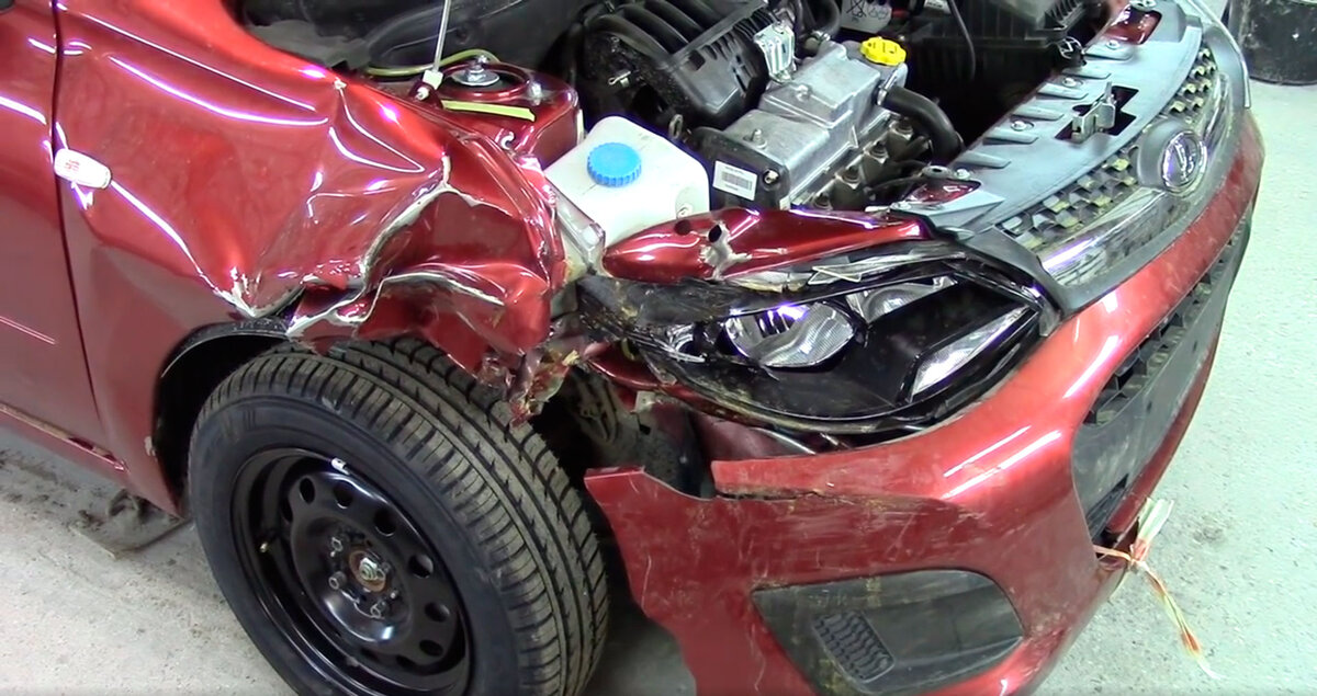 Пригнали мне на ремонт Ладу Калина с пробегом всего 2 000 км,но уже попала в ДТП.Удар был в правую сторону в колесо,повело лонжероны,ушла чашка. Все станет понятнее после разборки кузова,посмотрим,что можно отремонтировать,а а что под замену. Лонжерон погнуло в нескольких местах,привод согнуло дугой,рулевую тягу,чашка ушла на 2,5 см. Фиксирую автомобиль цепями,начинаю вытяжку.Силовые элементы кузова и брызговик смещаются вперед,теперь можно вынуть сломанный бачок.Дальше тянуть так не буду,т.к. начинает рваться металл и телевизор идет не совсем в нужном направлении.Потянул немного рамку радиатора(телевизор),чтобы подразгладились жимки. Следующий этап -вытяжка чашки ,я это делаю при помощи самодельной приспособы. Подтаскиваю ее вперед вместе с лонжероном. Привариваю тяговые кольца к правой части передней панели и с помощью гребенки вытягиваю. Измерил параметры кузова(длины,диагонали).Все встало на свои места. Если нужны размеры авто Лада Калина,смотрите в видео. Теперь буду равнять бр