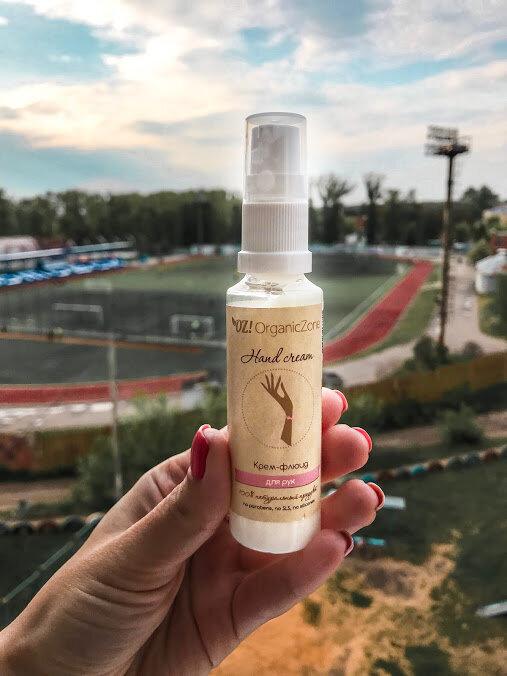 Жду вас в гости на своей странице в Instagram. Я наверное никогда не приучу себя мыть в перчатках. Это моя вечная проблема, а потом хожу с шелушащимися руками, как у змеи. После отмывания двух балконов, потом мытья окон у бабушки, потом на даче, руки остались в ужаснейшем состоянии и требуют постоянного увлажнения. Дома у меня есть крем «Любава», а вот с собой нужно брать что-то с собой, что наверняка влезет даже в самую маленькую сумочку. Поэтому, когда я увидела крем-флюид OZ! OrganicZone, то решила, что это идеальный вариант в дорогу. Состав: Очищенная вода, цветочная вода розмарина, масло ши, масло какао, масло абрикосовой косточки, масло кокоса, масло подсолнечника, касторовое масло, глицерил моностеарат, воск авокадо, гиалуроновая кислота (высоко- и низкомолекулярная), гель алоэ-вера, аллантоин, д-пантенол, глицерин, нуф, янтарная кислота,протеины шелка, экстракт донника, экстракт череды, витамин Е, эфирные масла лемонграса и апельсина, сорбиновая кислота, молочная кислота, сор