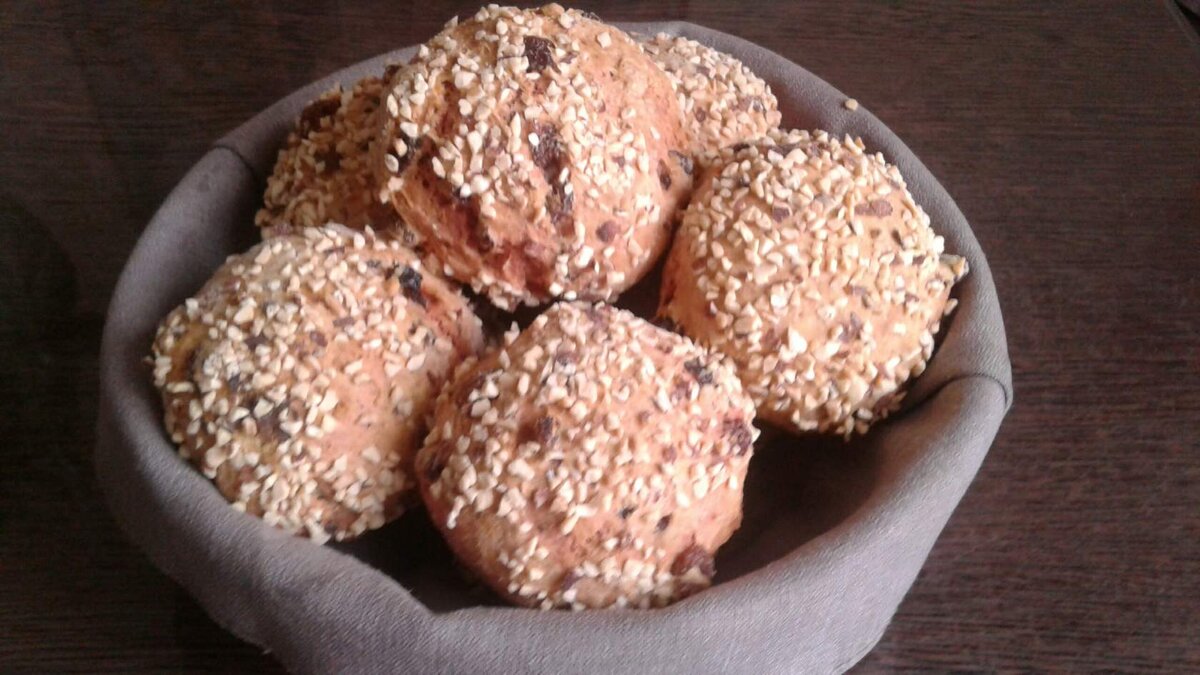 ванилин. Приготовление. В чашке смешиваем сухие ингредиенты: муку, куркуму, соду, соль, сахар и ванилин. Хорошо перемешиваем. В отдельной посуде смешиваем сметану и растительное масло. Размешиваем. И небольшими частями вливаем сметану в сухую смесь. По желанию добавляем изюм и замешиваем тесто. Тесто получается довольно липким, но больше муки доба