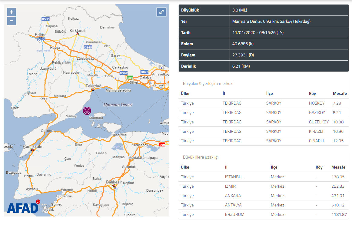 Son depremler arasında Tekirdağ büyük dikkat çekti! Marmara Bölgesi'nde merkez üssü Tekirdağ olan çok sayıda deprem meydana geldi. Sabah saatlerinde başlayan Tekirdağ merkez üssü olan depremler İstanbul'dan hissedildi. Tekirdağ'da deprem mi oldu? Sabah saat 06'dan bu yana Tekirdağ'da çok sayıda artçı şok depremler yaşanıyor... Deprem kuşağında olan, hemen hemen her gün Türkiye'nin farklı bir yerinde yaşanan depremlere bir yenisi daha eklendi. Bu kez Tekirdağ sabah saatlerinden bu yana sallanıyor. İşte günün son dakika deprem haberinin ayrıntıları. Emlak Pencerem / Deprem Haberleri - 11 Ocak 2020 - İstanbul 11 Ocak son depremlere Tekirdağ ili eklendi. Günün son dakika deprem haberi Marmara bölgesi'nden Tekirdağ ve bölgesinden geldi. Peş peşe yaşanan depremler bölge halkını korkuttu. Peki Tekirdağ depremi ile alakalı gelen son bilgiler neler? İşte Türkiye'de yaşanan son deprem haberleri arasında yer alan Tekirdağ'da bu sabah meydana gelen depremin ayrıntıları. Afet ve Acil Durum Yöneti