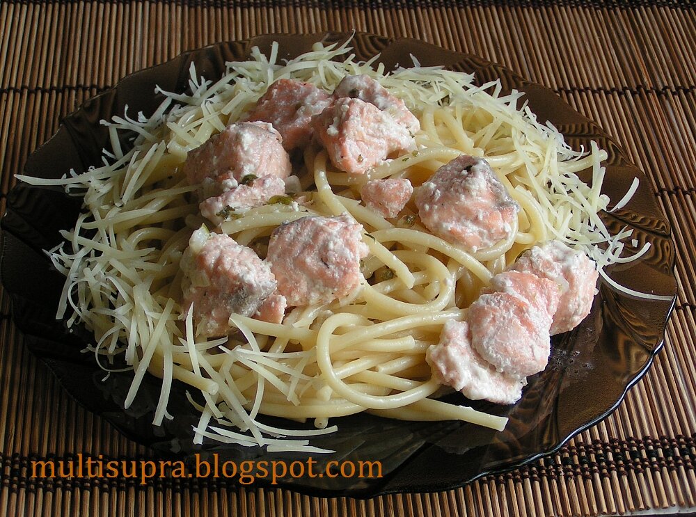 Обожаю итальянскую кухню, особенно те блюда, которые быстро готовятся. Вот одно из них - максимум за 20 минут. - рыбу порезать крупными кубиками - на режиме "пирог"или "жарка" в смеси сливочного и растительного масла слегка обжарить мелко порезанную луковицу - минут 5, до прозрачности - добавить рыбу, перемешать, и вместе пожарить, пока рыба не станет розовой - это займет еще 5 минут - влить сливки, посолить по вкусу, добавить сухие травки и мускатный орех, потомить вместе минут 10 и выключить - пока готовится рыба, отварить спагетти (к сожалению, не в мультиварке:)) На порционную тарелку или в большую общую миску выложить спагетти, сверху рыбу вместе с соусом и посыпать тертым пармезаном. Очень вкусно!
