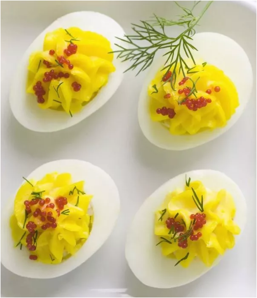 Жареные яйца с соусом Жаренные во фритюре яйца разложить на приготовленные из хлеба крутоны, покрыть черным маслом, томатным соусом. Жареные яйца с сельдереем Жаренные во фритюре яйца положить на пюре из сельдерея, или на картофельное пюре, или на пюре из шпината.