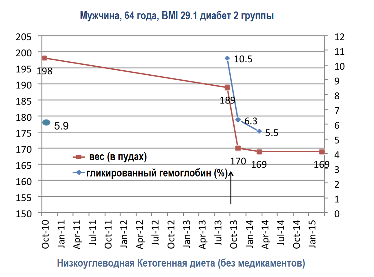 ВНЕДРЕНИЕ НИЗКОУГЛЕВОДНОЙ, КЕТОГЕННОЙ ДИЕТЫ ДЛЯ ЛЕЧЕНИЯ САХАРНОГО ДИАБЕТА 2 ТИПА Этот обзор обобщает клинические данные, подтверждающие использование кетогенной диеты при сахарном диабете 2 типа (T2DM), и дает рекомендации относительно ее безопасного и эффективного клинического применения. В конце 1800-х годов, еще до того, как была понята патофизиология диабета, было известно, что голодание или ограниченные углеводами диеты обращают симптомы диабета вспять. В учебнике 1877 года отмечалось: "Существует мало болезней, которые дают практикующему столь ясное представление о том, что должно быть сделано ... диабетик должен исключить из своего рациона все сахариновые [сладкие] и мучнистые [крахмалистые] вещества.” Д-р Фредерик Аллен и Эллиот Джослин также использовали голодание и низкоуглеводные диеты для лечения диабета в начале 1900-х годов, причем последний допускал неограниченное потребление неуглеводосодержащих продуктов. Когда в 1921 году был открыт инсулин, рекомендации по ограничен