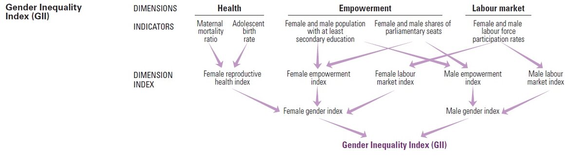Вы наверное можете подумать, что здоровье будут измерять по болезням М и Ж, смертности от различных заболеваний (где мужчины везде лидируют в 2-5 раз [2]), доступности медицины, делать какие-то прогнозы? А нет :) Здоровье они измеряют только по материнской смертности и рождаемости у подростков (тип