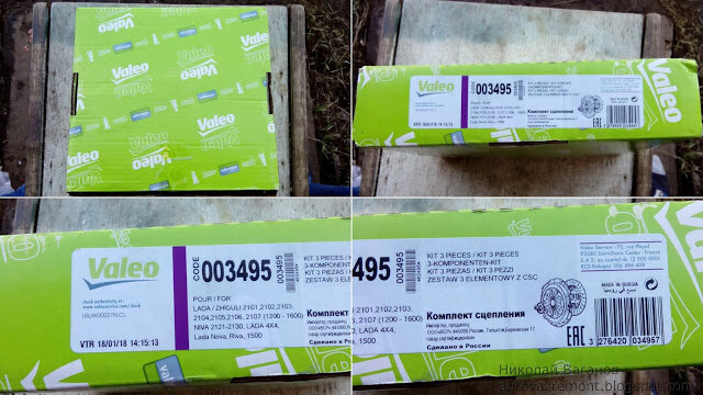 Сегодня рассмотрим комплект сцепления "Valeo" для ВАЗ-2101-07 и Нива 4х4. Комплект упакован в картонную коробку салатного цвета, поверхность картона гладкая глянцевая. На торце имеется приклеенная этикетка, на которой указаны (на разных языках) контакты производителя, контакты дистрибьютора в РФ, спецификация, а также имеется код для проверки подлинности изделия.