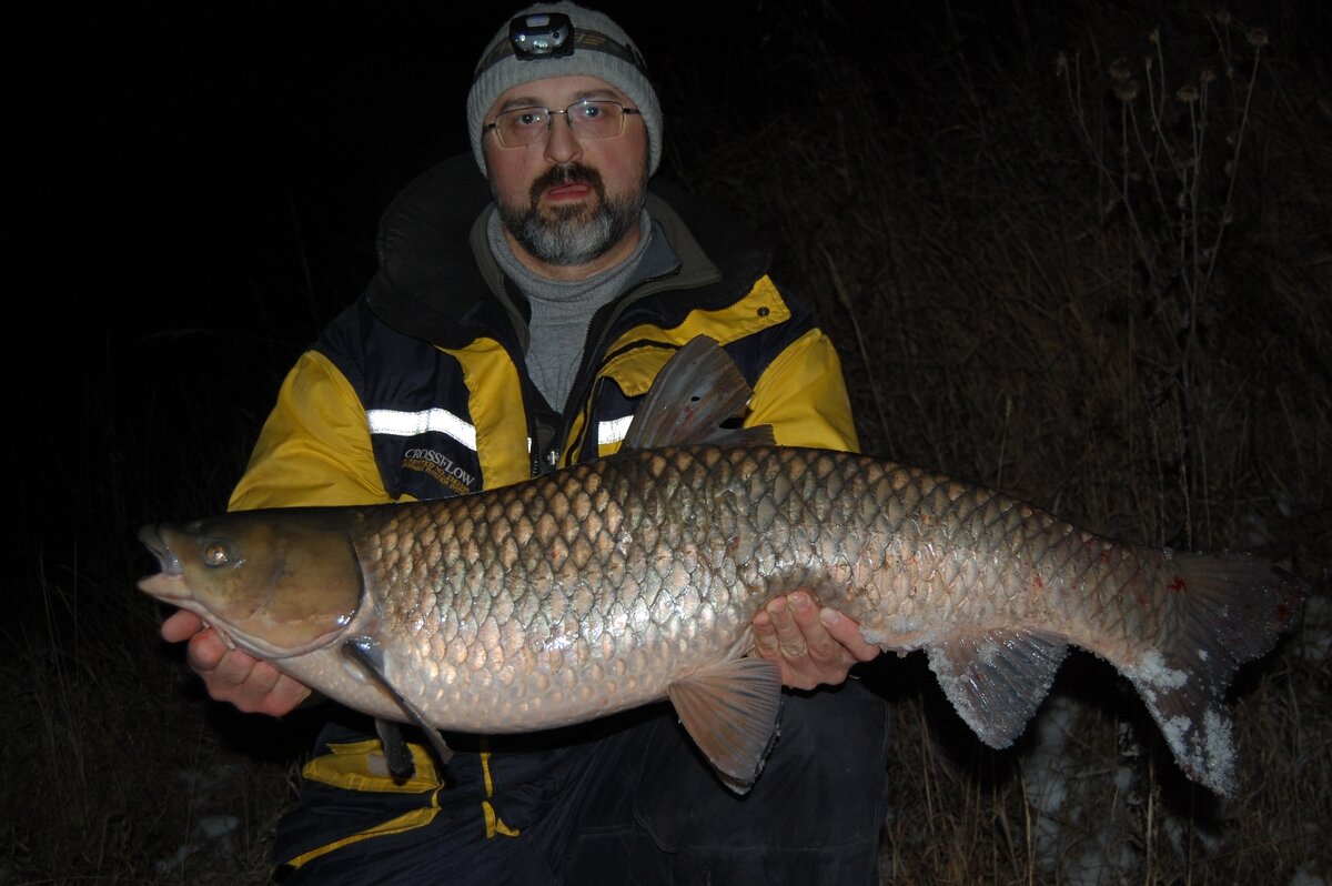 Перемещаемся, ищем. И вот на очередной проводке невнятный контакт. Контакт вверх двинул. Довольно быстро что-то тяжёлое к лодке подвёл. Амур внушительных размеров прицепился за спинной плавник. Особо не бузит, дефилирует рядом. А подсака в лодке нет. Напарник на вёсла и к берегу. Быстренько его на мель выволок. В общем годзила взят. Дальше ещё часа три хлестали воду. И вот уже когда это занятие изрядно утомило, на входе в яму скромный судачишка объявился. На этом и завершили выезд.