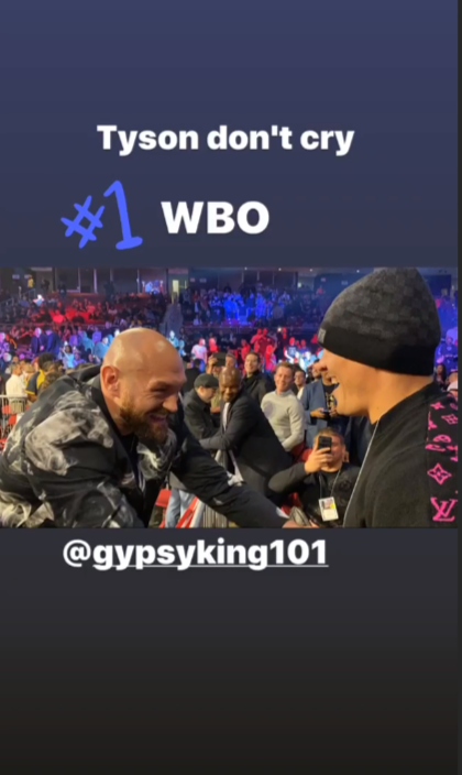 Несколько дней назад эпатажный экс-чемпион мира в супертяжелом весе Тайсон Фьюри "наехал" на бывшего абсолютного чемпиона в первом тяжелом весе Александра Усика. Когда президент Всемирной боксерской организации Пако Валькарсель предложил британцу подраться с проспектом из Узбекистана Баходиром Жалоловым, Фьюри раскритиковал WBO и ее рейтинг. Тайсон пожаловался, что организация вместо него сделала обязательным претендентом "какого-то бомжа из первого тяжелого веса". Хотя Фьюри и не называл имя Усика, намек был более чем очевидным. Украинский боксер отреагировал на выпад конкурента по дивизиону на своей странице в Instagram. "Тайсон, не плачь. Первый номер WBO", - написал Александр Усик в сторис.