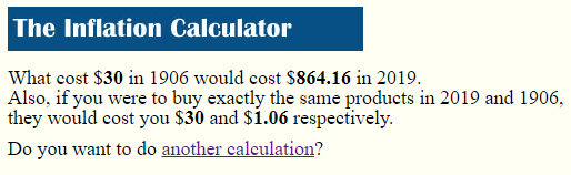 Если мы обратимся к инфляционному калькулятору то сможем хотя бы очень примерно посчитать, сколько же получал герой "Даров волхвов" до понижения дохода в современных нам долларах 2019 года: