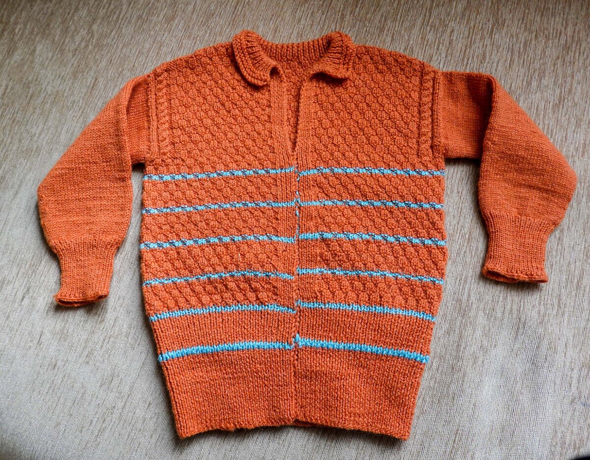 Детская одежда должна быть удобной, из качественных (желательно натуральных) материалов, "дышащей", теплой. Купить готовую одежду для ребенка проще всего. Но найти среди китайского изобилия качественную вещь непросто. И цены при этом совсем не детские. Поэтому многие мамы и бабушки шьют и вяжут для своих крох самостоятельно, благо натуральные ткани и шерстяные нити есть еще в продаже. Рассмотрим вариант вязаной детской кофточки из шерстяной пряжи круговыми (на леске) спицами. Шерсть использована марки: Она мне нравится толщиной нити и последующей фактурой изделия. Спицы диаметром 2мм. Для начала вяжем образец и измеряем количество петель на 10 см. Затем измеряем сантиметром ширину нашей кофты. Причем, не спинки, или полочки, а целиком всей кофты. И высчитываем количество петель для изделия. Узор для вязания рассматривать не будем. Это не принципиально, можно вязать любым удобным. Начинаем вязание снизу, с обычной резинки. 1 лицевая, 1 изнаночная. Затем переходим на рисунок полотна. Эт